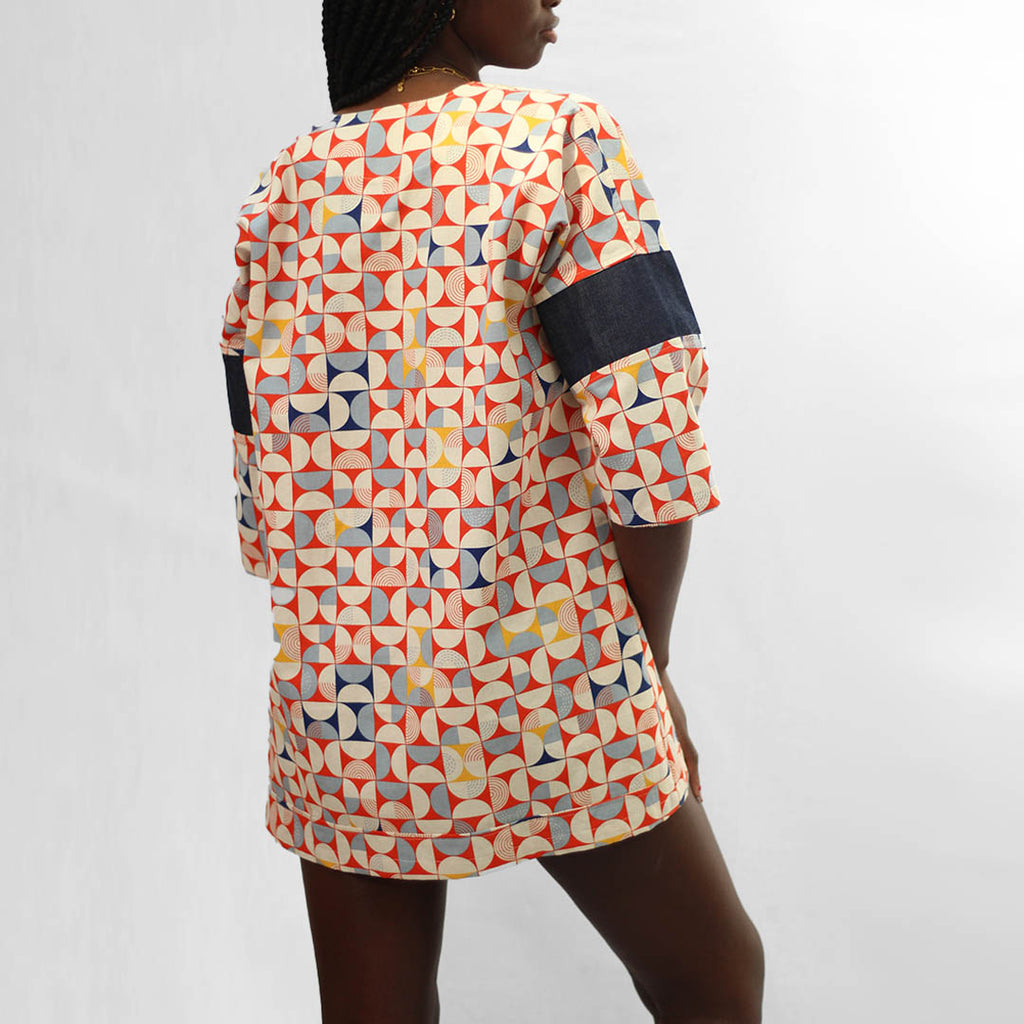 Cette robe manches mi-longues vous apportera fraîcheur et originalité avec ses motifs géométriques inspirés des années 70.